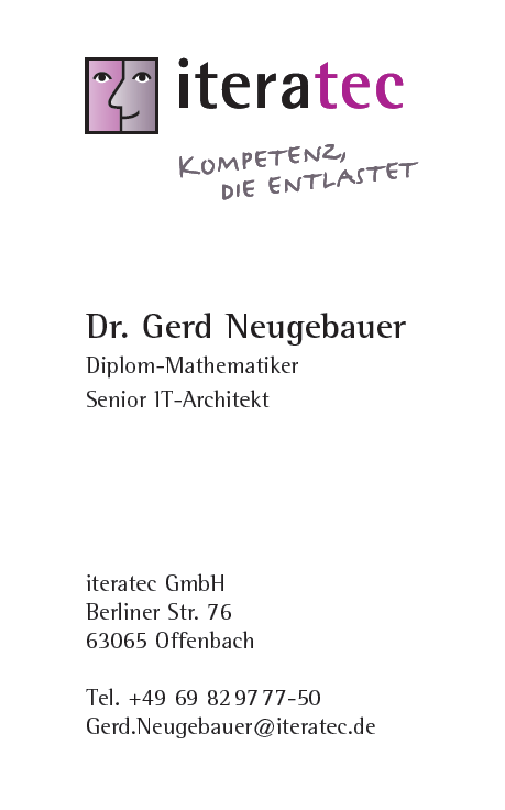 Ich arbeite gegenwärtig bei iteratec in der Geschäftsstelle Frankfurt. Hier bin ich als Senior-IT-Architekt tätig.